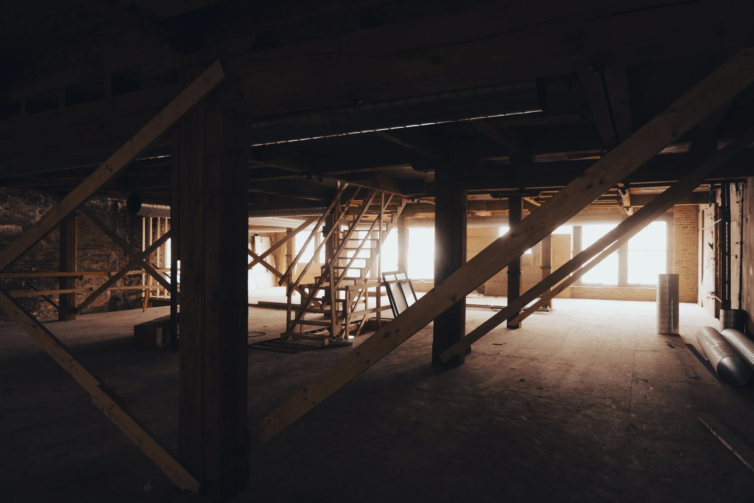 La structure du bâtiment a été entièrement refaite pour garantir sa solidité. Nous avons ajouté un ascenseur central et un puits d'escalier double pour améliorer l'accessibilité. La mécanique du bâtiment a été remise à neuf, incluant l'électricité, le drainage, l'alimentation en eau, ainsi qu'un système HVAC et de gicleurs.